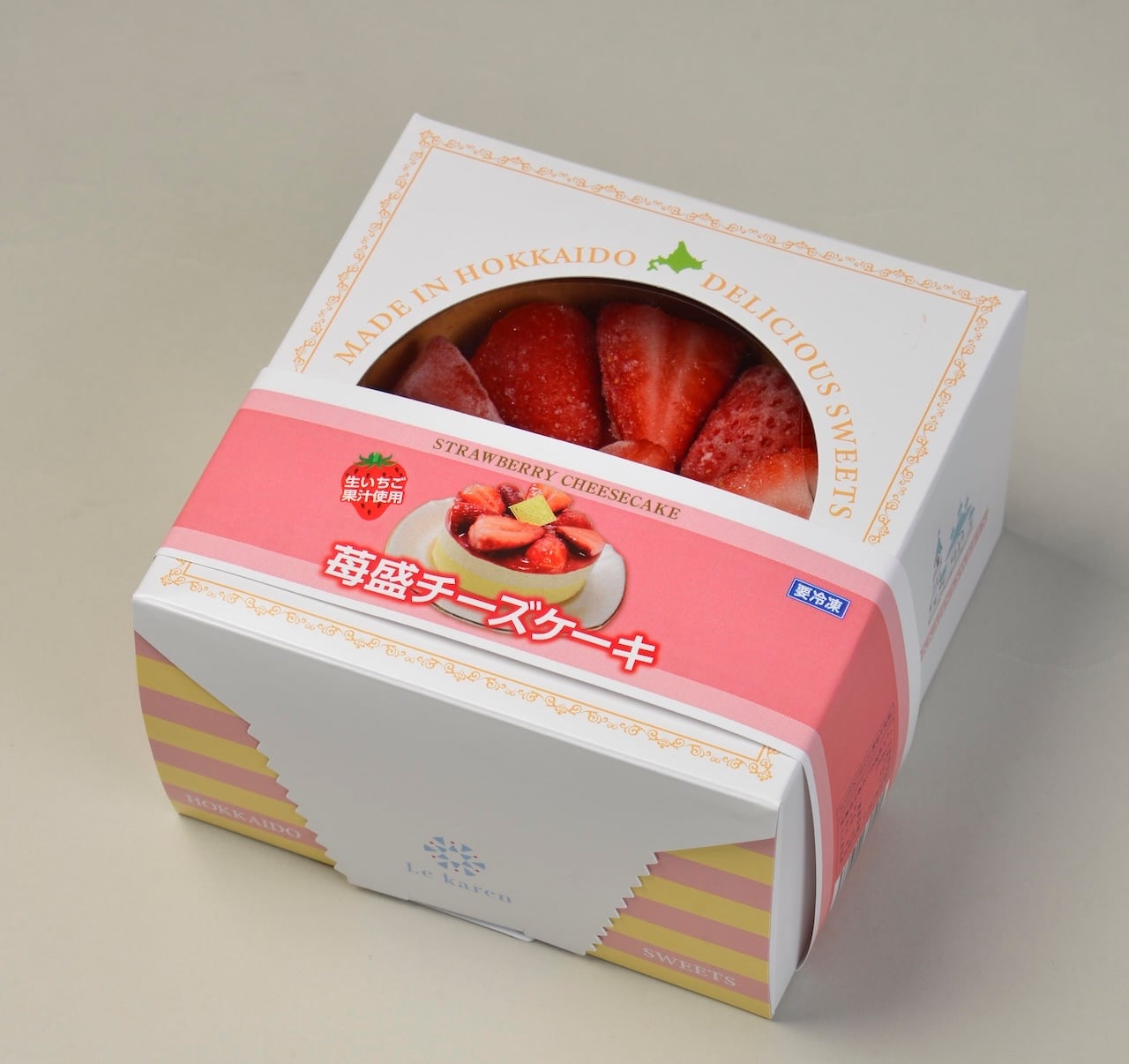 北海道原料を使用した2層のチーズケーキの上に苺の生果汁ピューレと苺果実が載ったプレミアムなケーキです。クリスマスや年末年始、晴れの日に楽しめるプチ贅沢なスイーツです