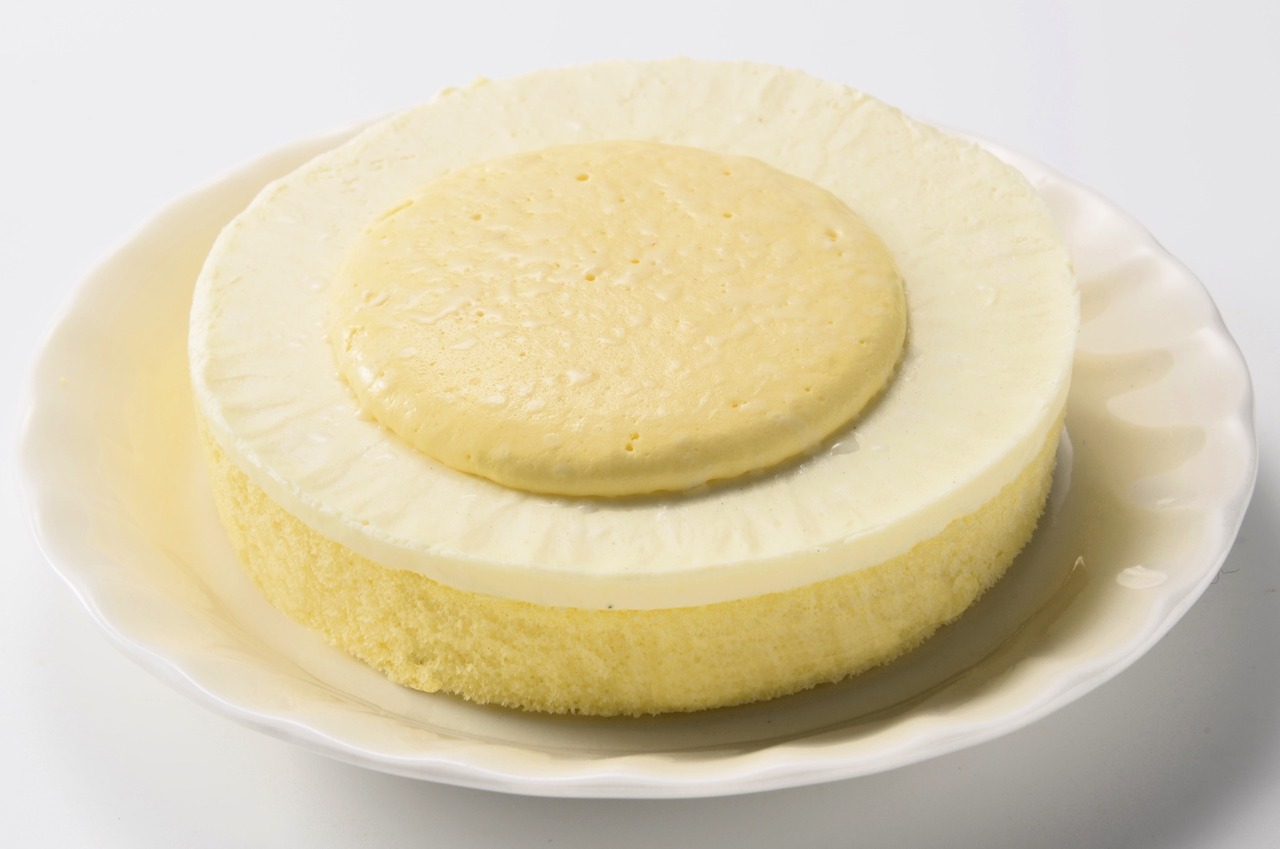 北海道原料を使用した2層のチーズケーキです。ケーキの上には特製カスタードソースが載ってます。スフレチーズケーキ+生チーズケーキ+特製カスタード