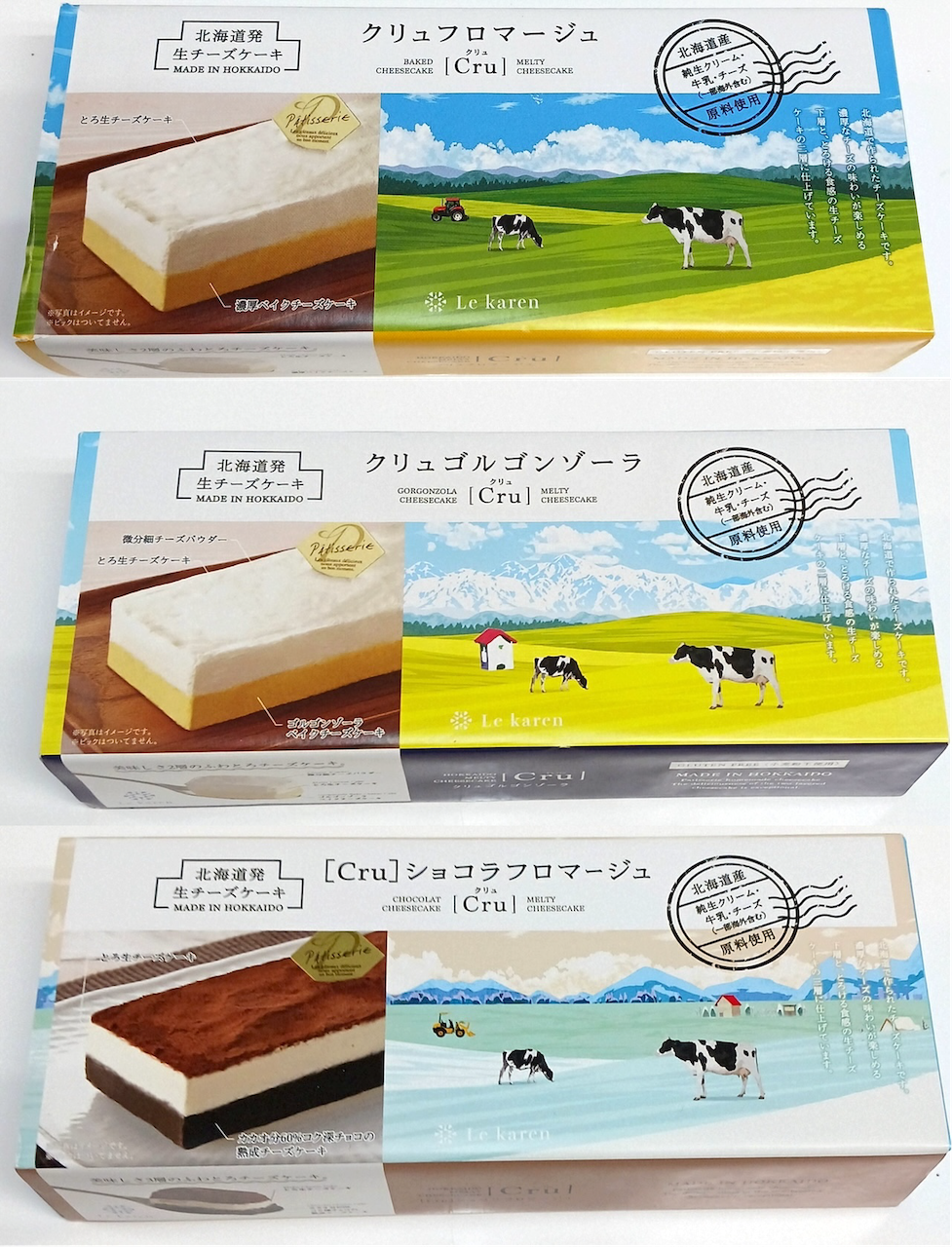 北海道原料をふんだんに使用した3種類のチーズケーキ食べ比べセットです。それぞれが2層の特別の美味しさに仕上がっております。 売れ行き好調のセットです