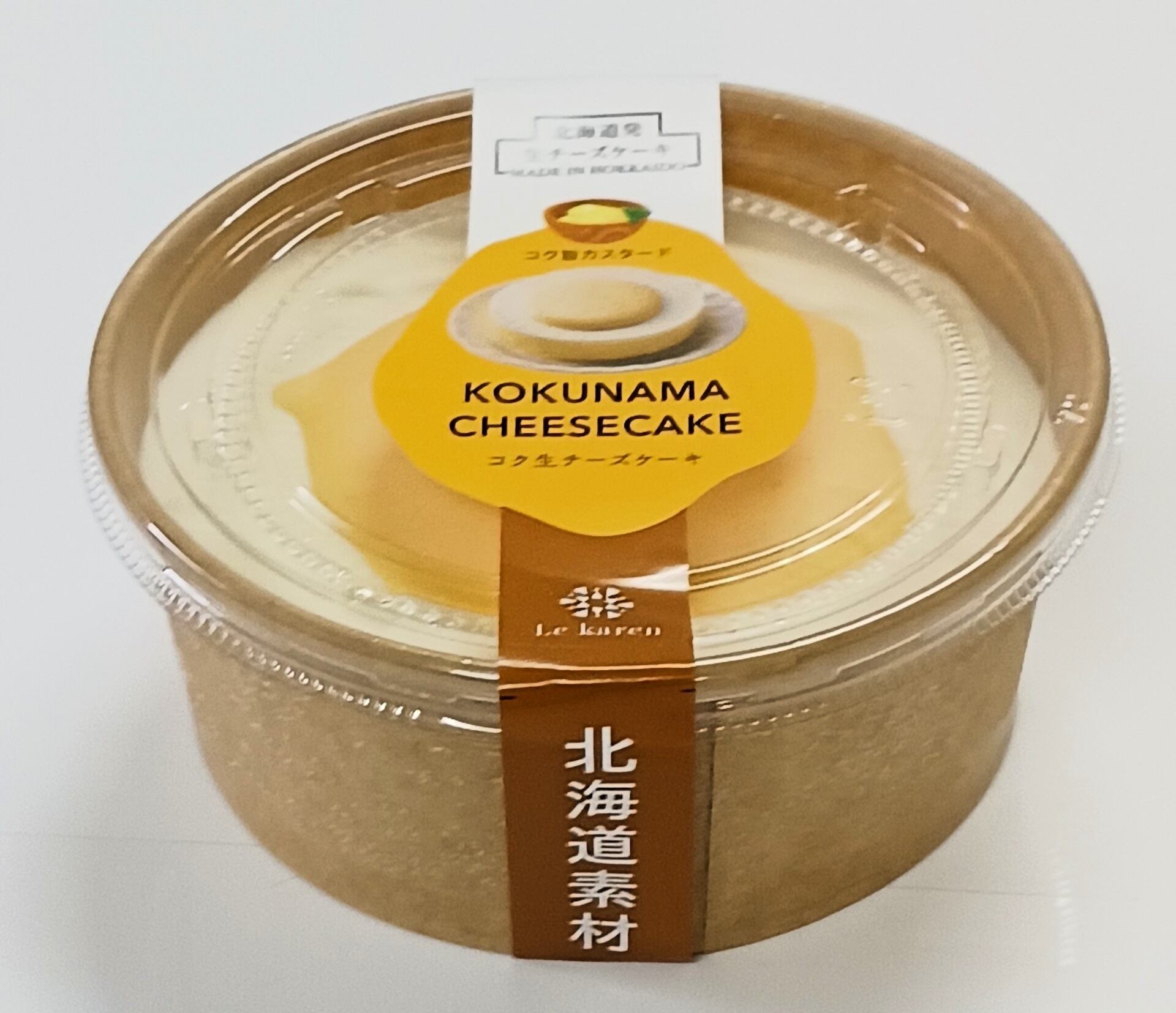 北海道原料を使用した2層のチーズケーキです。ケーキの上には特製カスタードソースが載ってます。スフレチーズケーキ+生チーズケーキ+特製カスタード