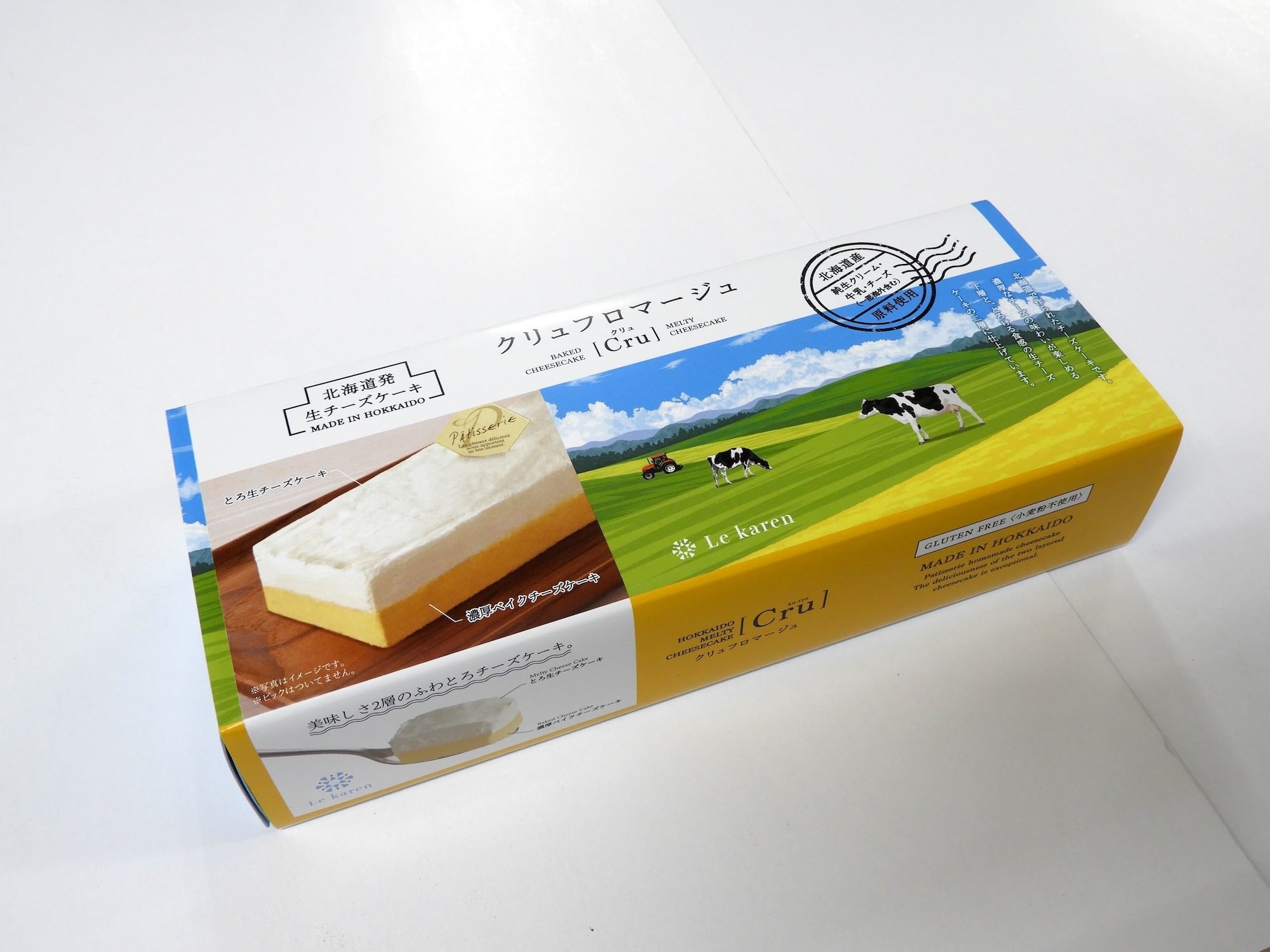 [Cru]シリーズは、新しい美味しさをテーマに、主に北海道産原料を使用し、北海道で作られたチーズケーキです。 濃厚なチーズの味わいが楽しめる下層と、とろける食感の生チーズケーキの2層に仕上げています。